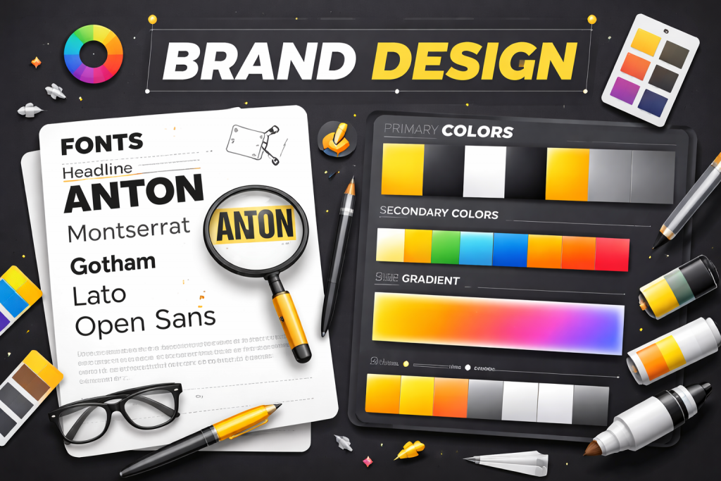 Wir entwicklen eine passende Farbwelt und Schriftkombination, die deine Marke klar erkennbar macht. Dadurch wirkt dein Auftritt einheitlich und hochwertig – online wie offline.